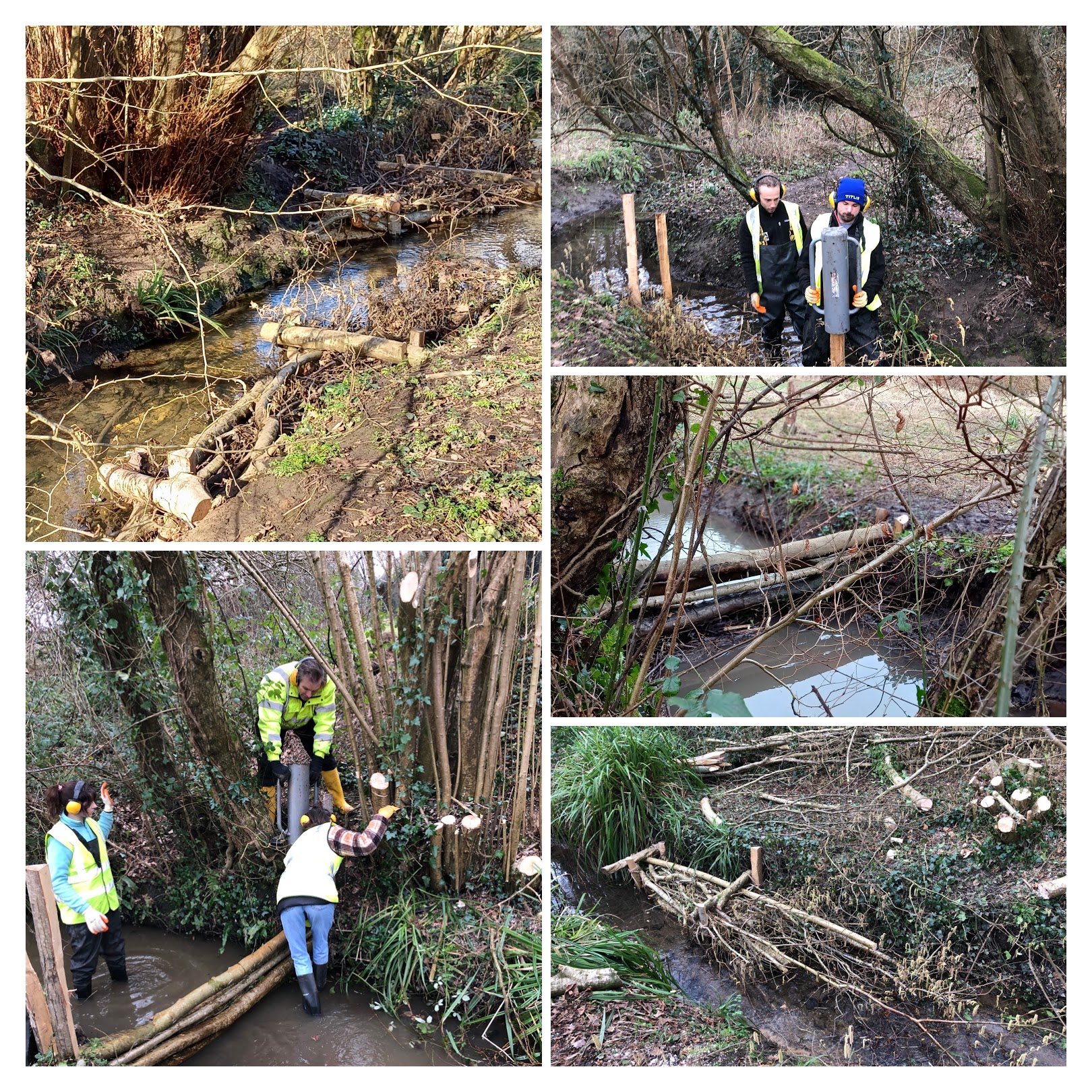 Woody Berms have been put in the stream South of the stone bridge using coppiced hazel. They will create variability in the flow, trapping sediment but also scouring the bed of the stream. These actions should help to increase marginal vegetation and improve the habitats and provide shelter for all sorts of animals living in the water.